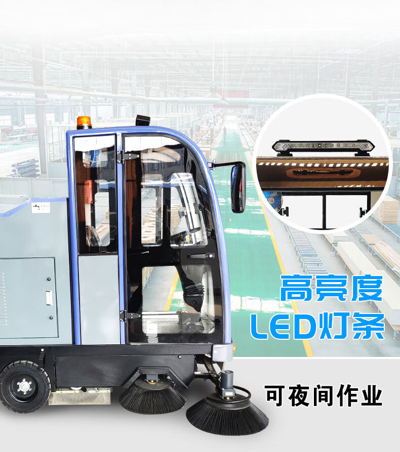 DJ2000电动驾驶室全封闭驾驶扫地机为扫地、吸尘、喷水相结合的自动清洁一体机,比较的适合地面平坦的室内水泥地清扫或户外水泥地及沥青地面的清扫。此款扫地机主要用于工厂大车间、企业、库房、公园、小区别墅、环卫、广场、学校等室内或户外场所的清扫,是工厂保洁物业公司必备的清洁利器。