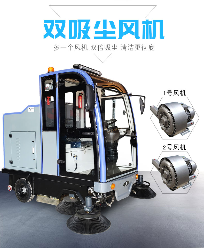内置强力控尘系统,其吸尘能力自然强,配有洒水装置,降尘更彻底。