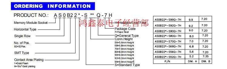 AS0B226-S56Q-7H, FOXCONN富士康连接器,MINIPCI-E连接器,H=5.6