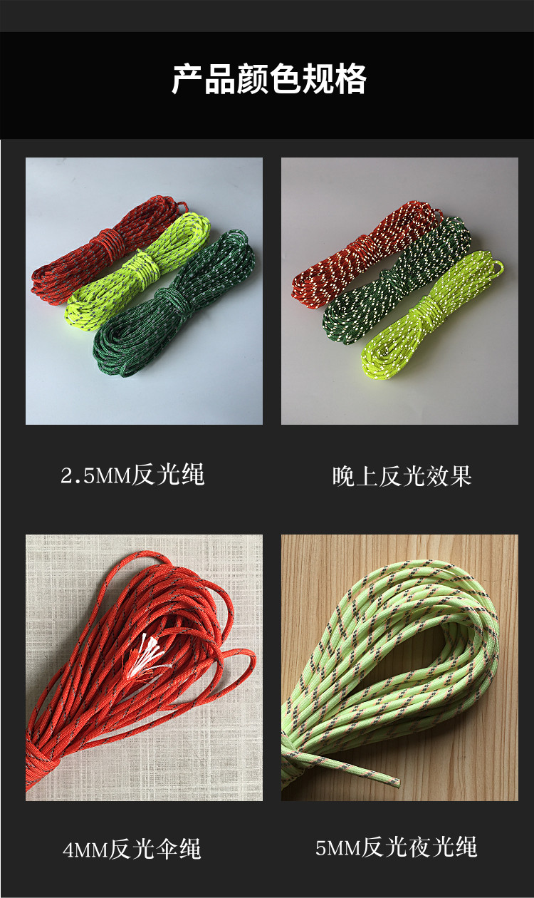- 新珠厂家2.5mm夜光反光伞绳 野营帐篷拉绳 登山安全绳 手链编织绳 质量可靠 欢迎订购