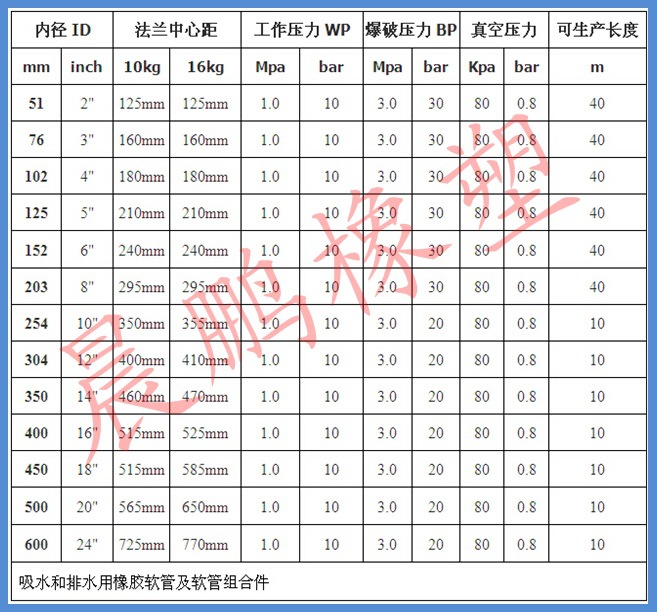 152*10m吸排水橡胶软管: